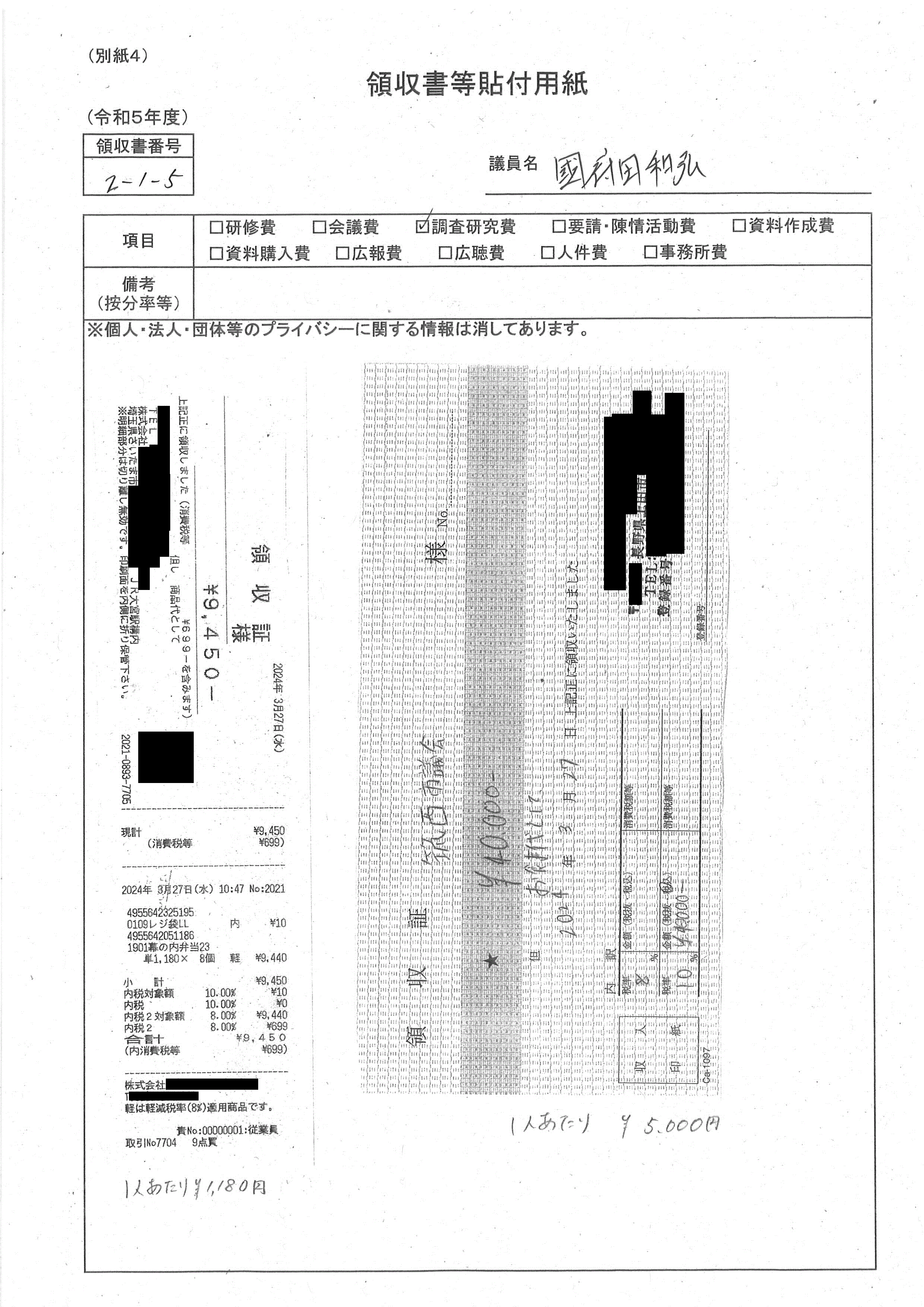 政務活動費(令和5年度 國府田議員)