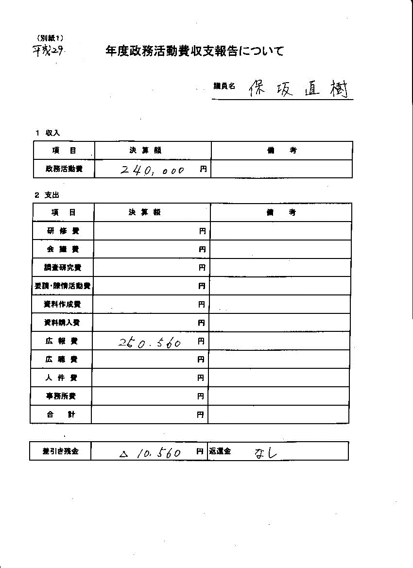 政務活動費(保坂議員)