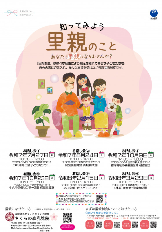里親制度とは、児童福祉における子どものための保護制度です。さまざまな理由で親と暮らせなくなった子どもたちが全国に約46,000人、茨城県内に約700人います。